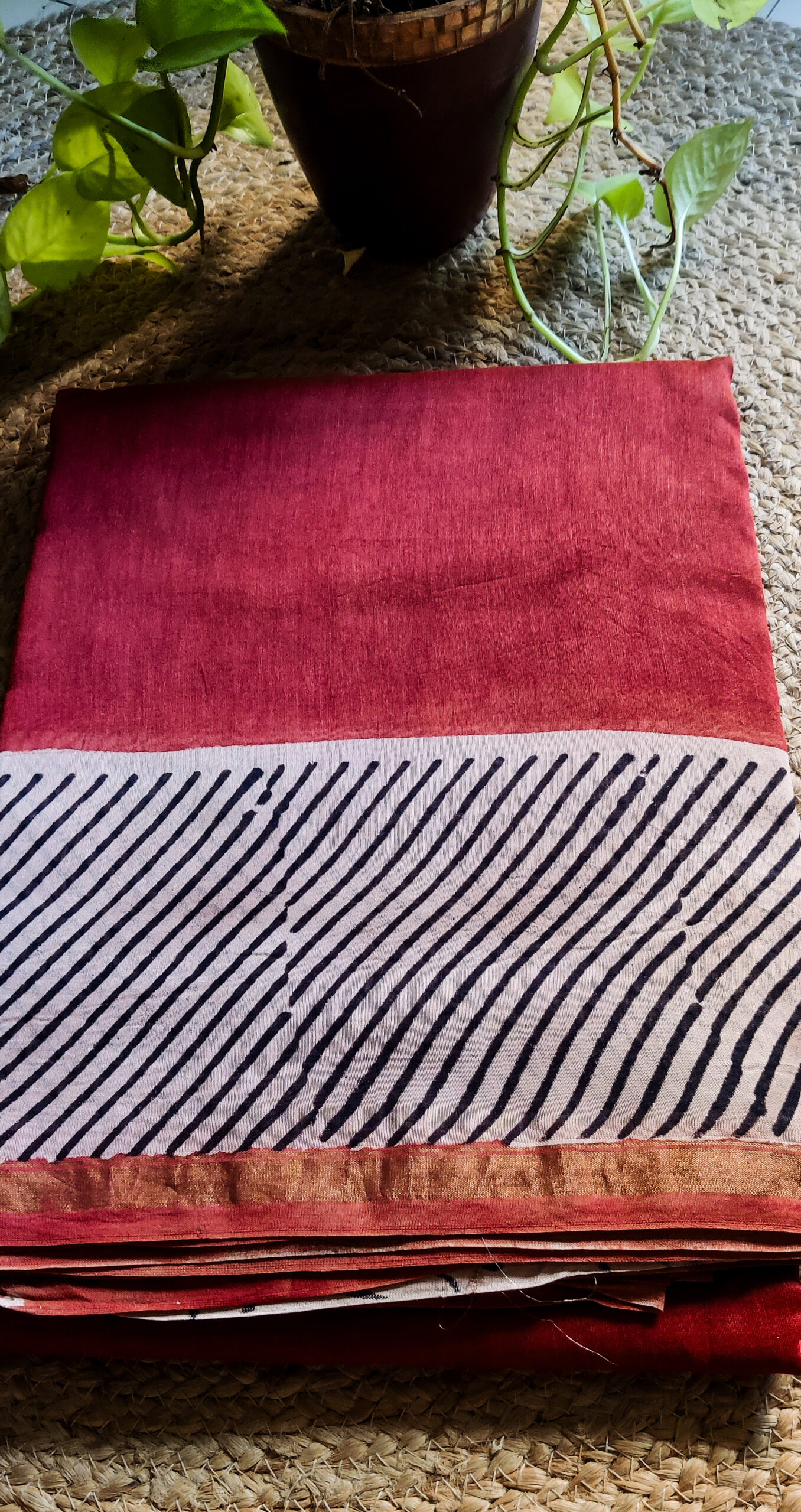 Please note that our textiles are handblock printed and due to that you may find slight irregularities from one product to another. We would also like to mention that the colors of the products can be a little different due to photographic lighting sources or your monitor / phone screen settings.
