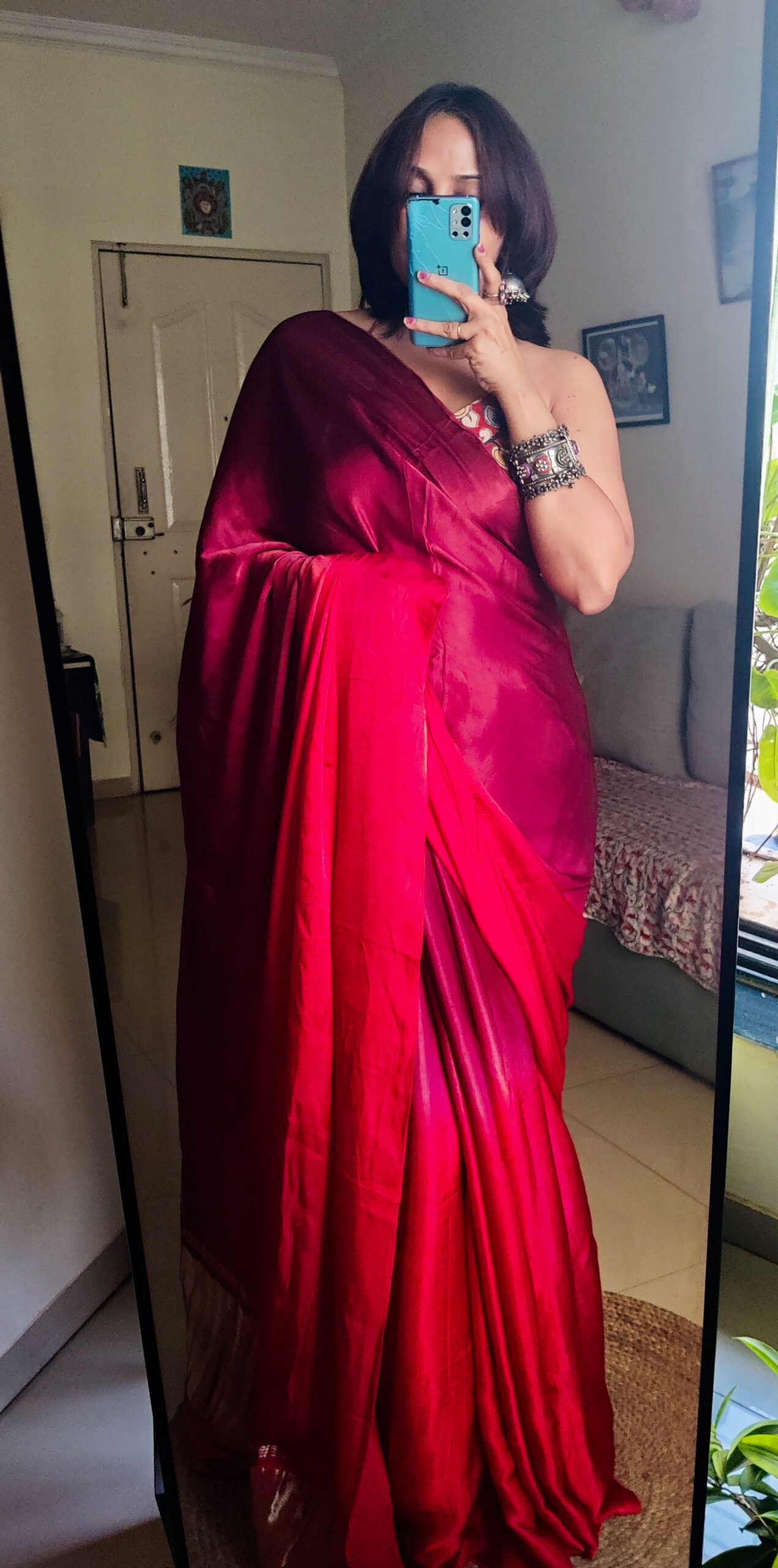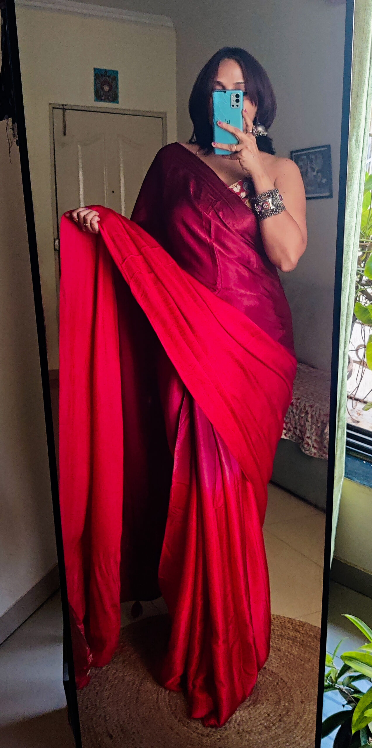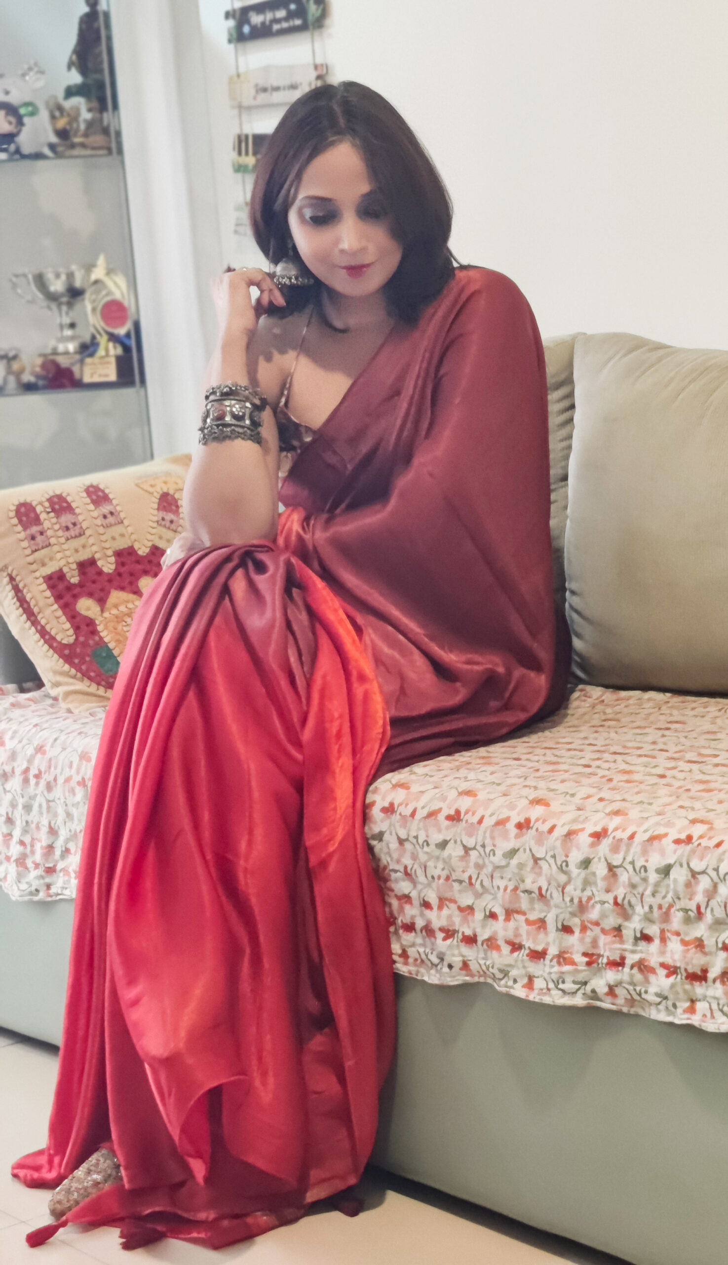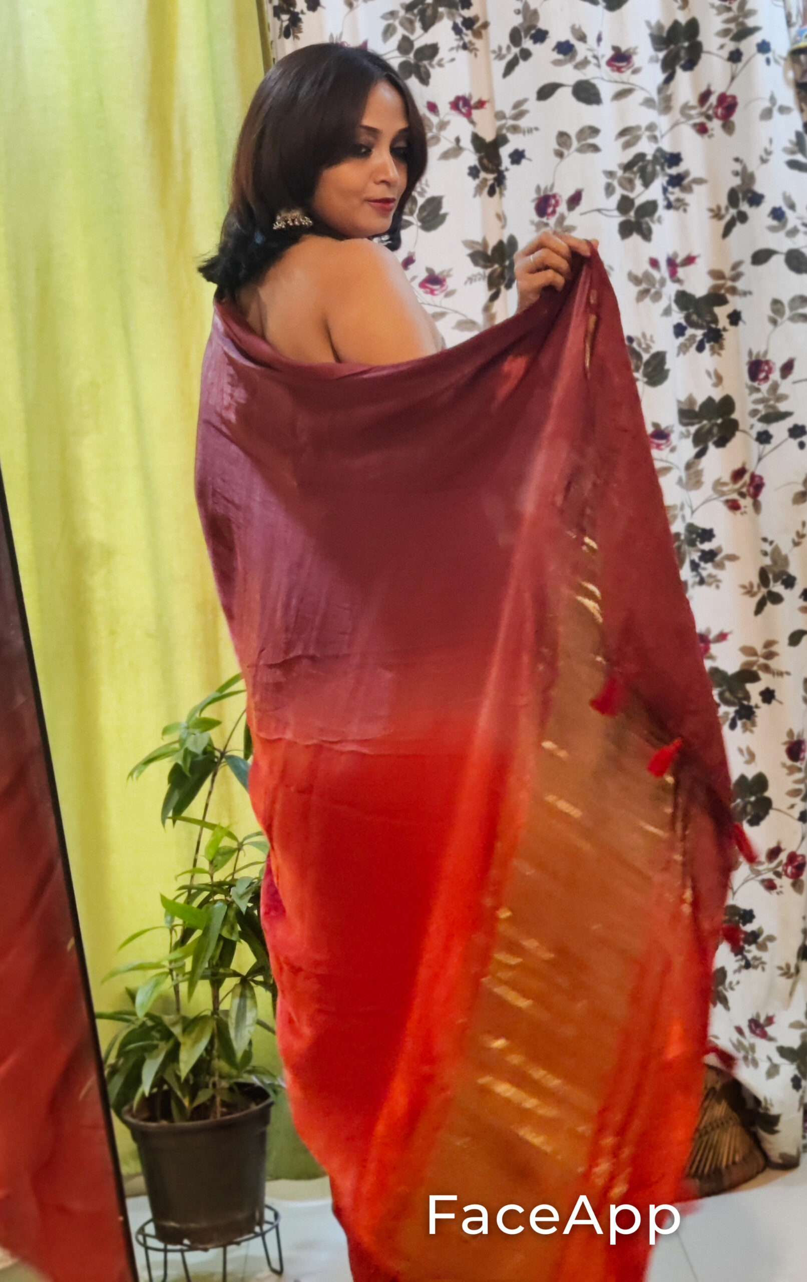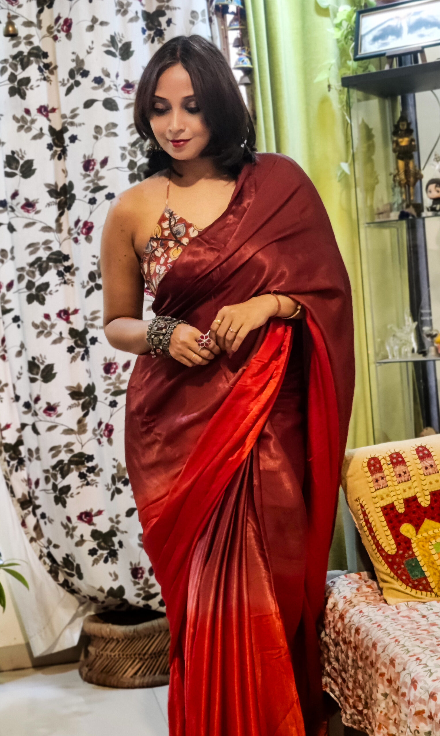 Colour:- Maroon & Rust Orange half n half body