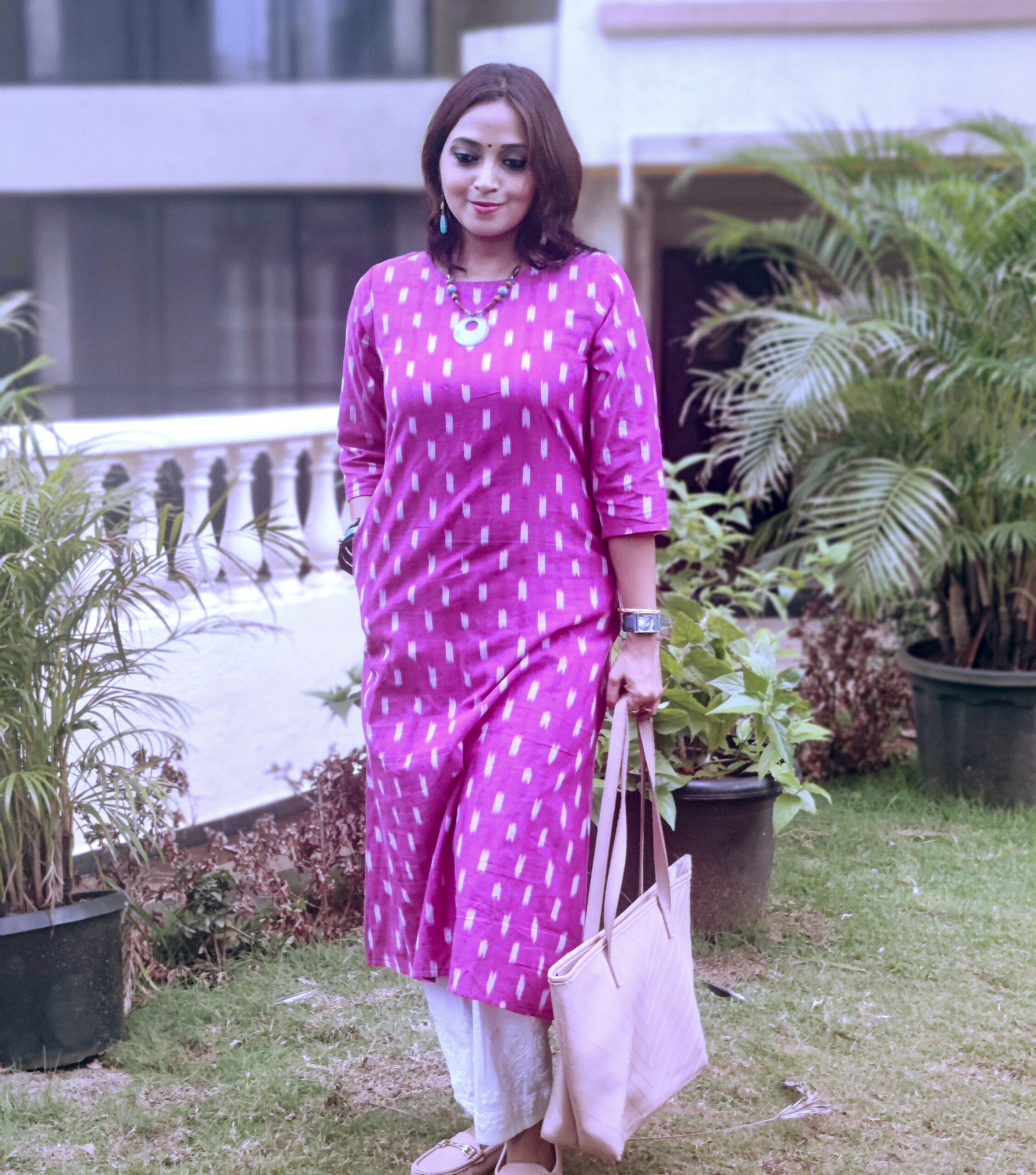 “Gulaabi Kusum”,(Handcrafted Ikkat Pure Cotton Kurta)