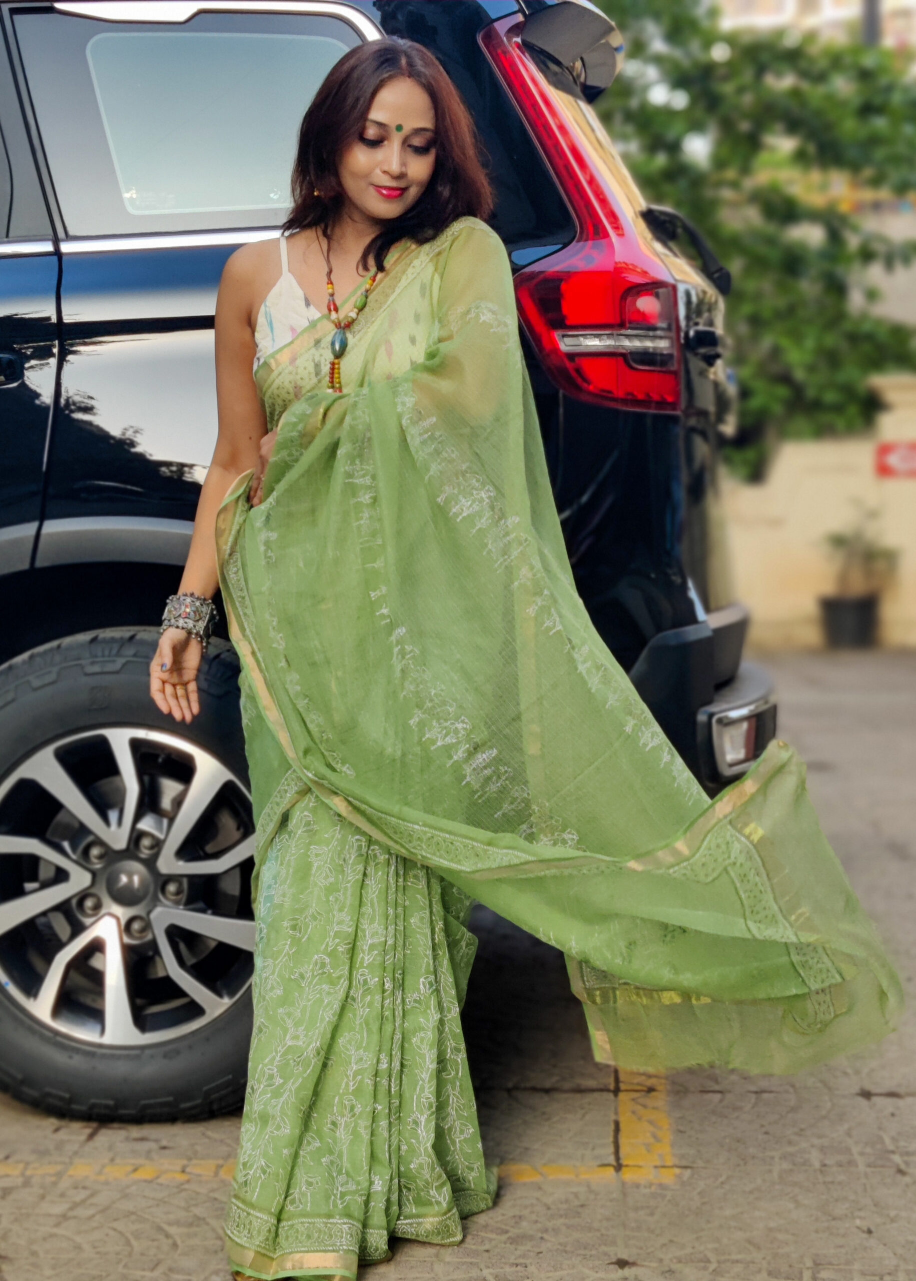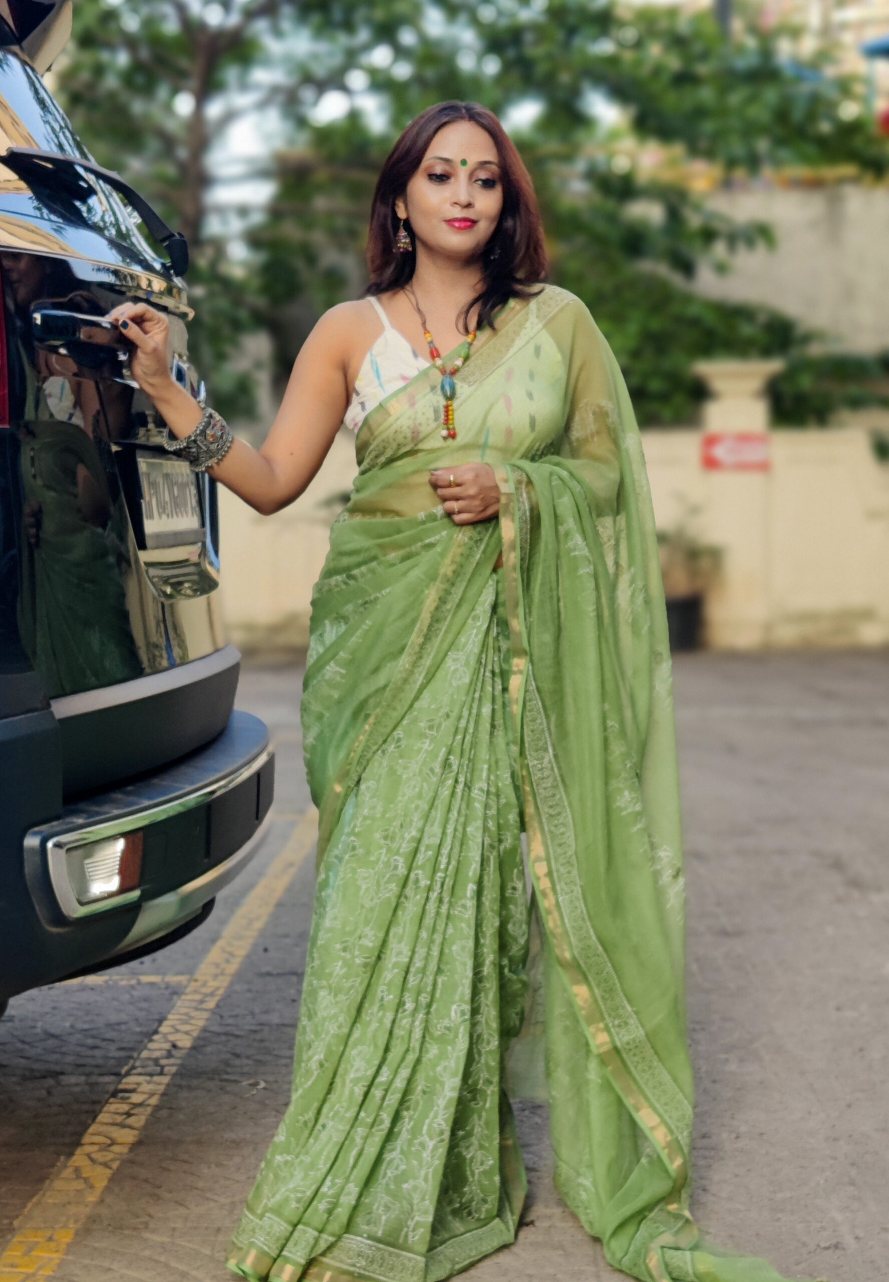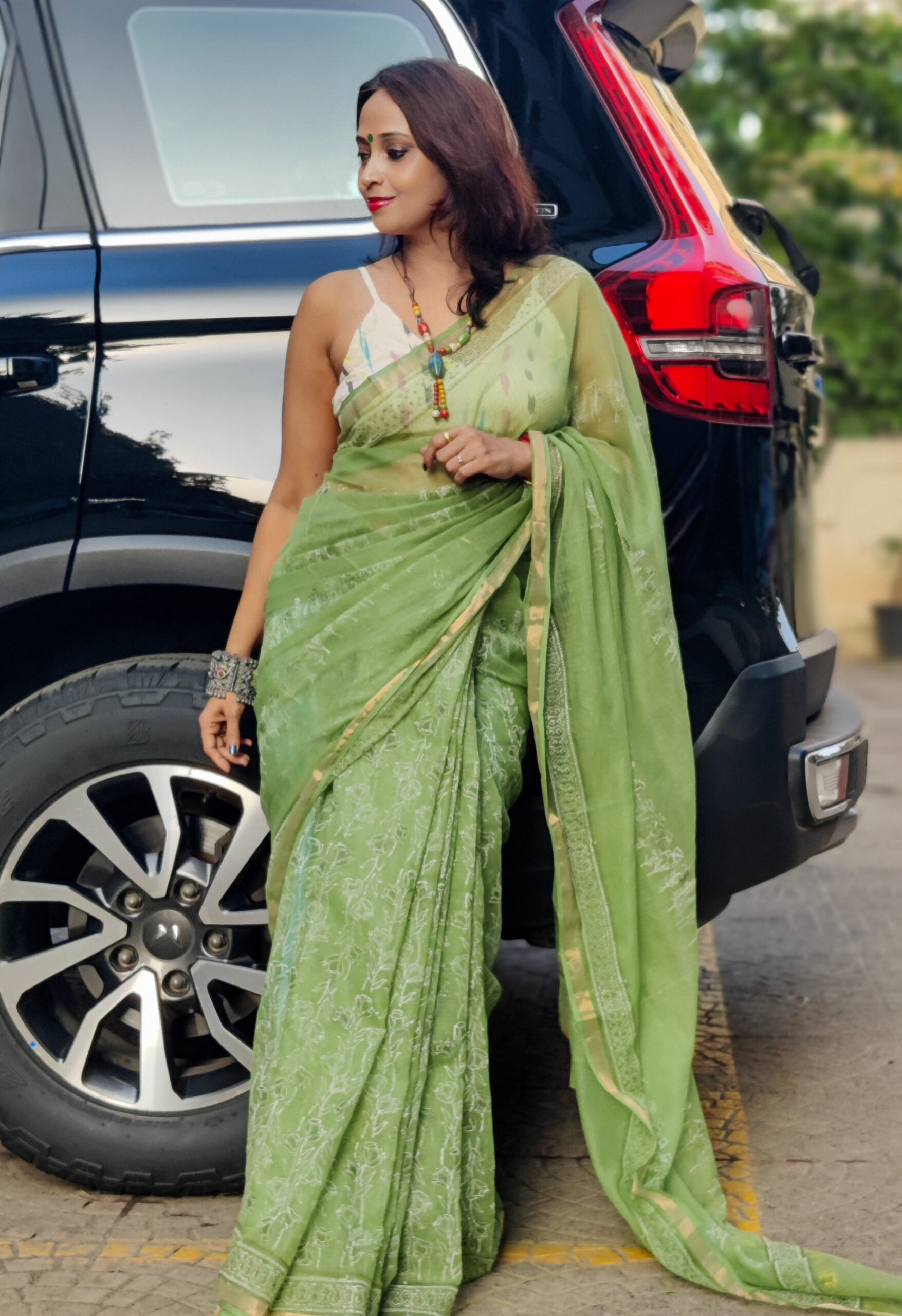MIRAAYA(Handblock Printed Kota Doria Saree)