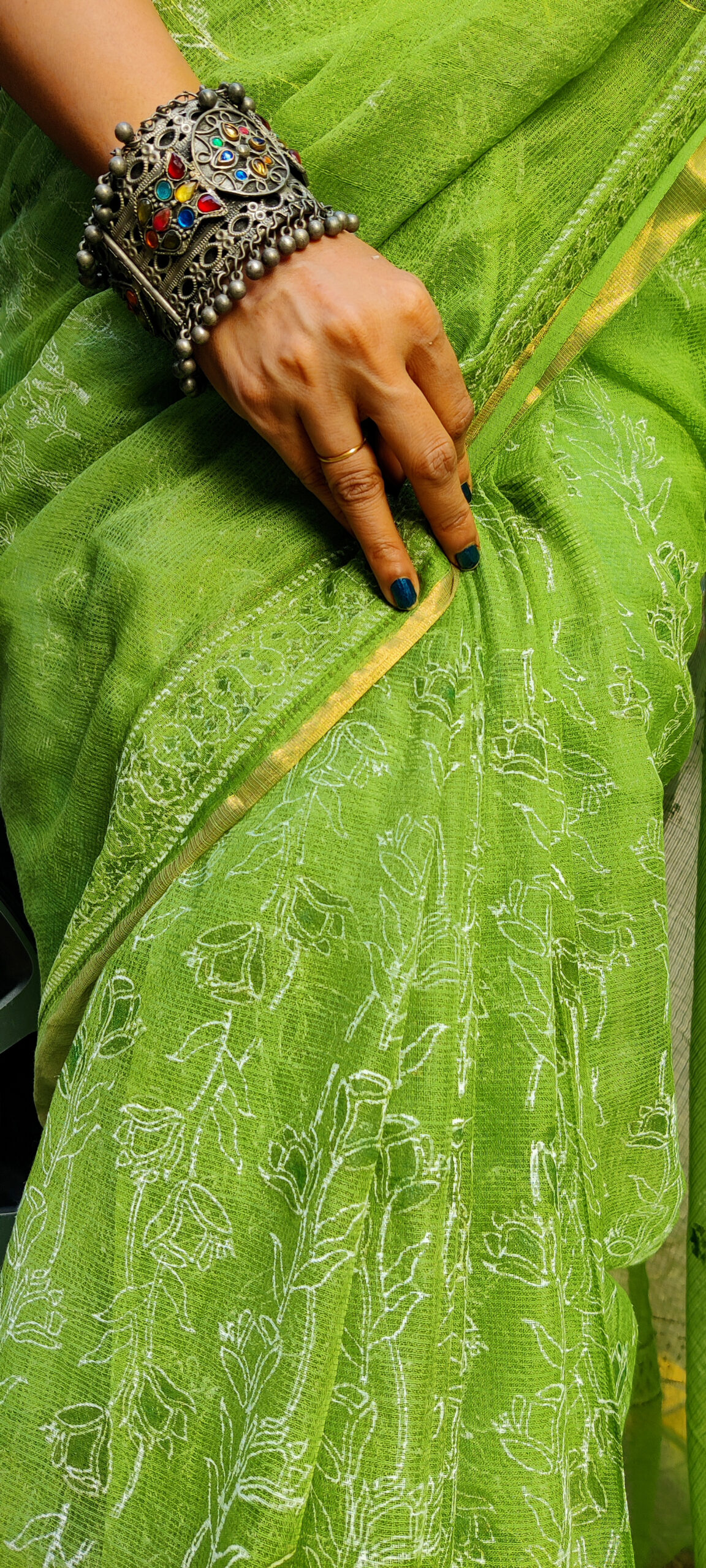 Light as air, soft in drape, and rich in tradition – our Kota sarees are elevated with exquisite handblock prints. Each piece is a blend of airy comfort and timeless artistry, making them perfect for both everyday elegance and festive charm.