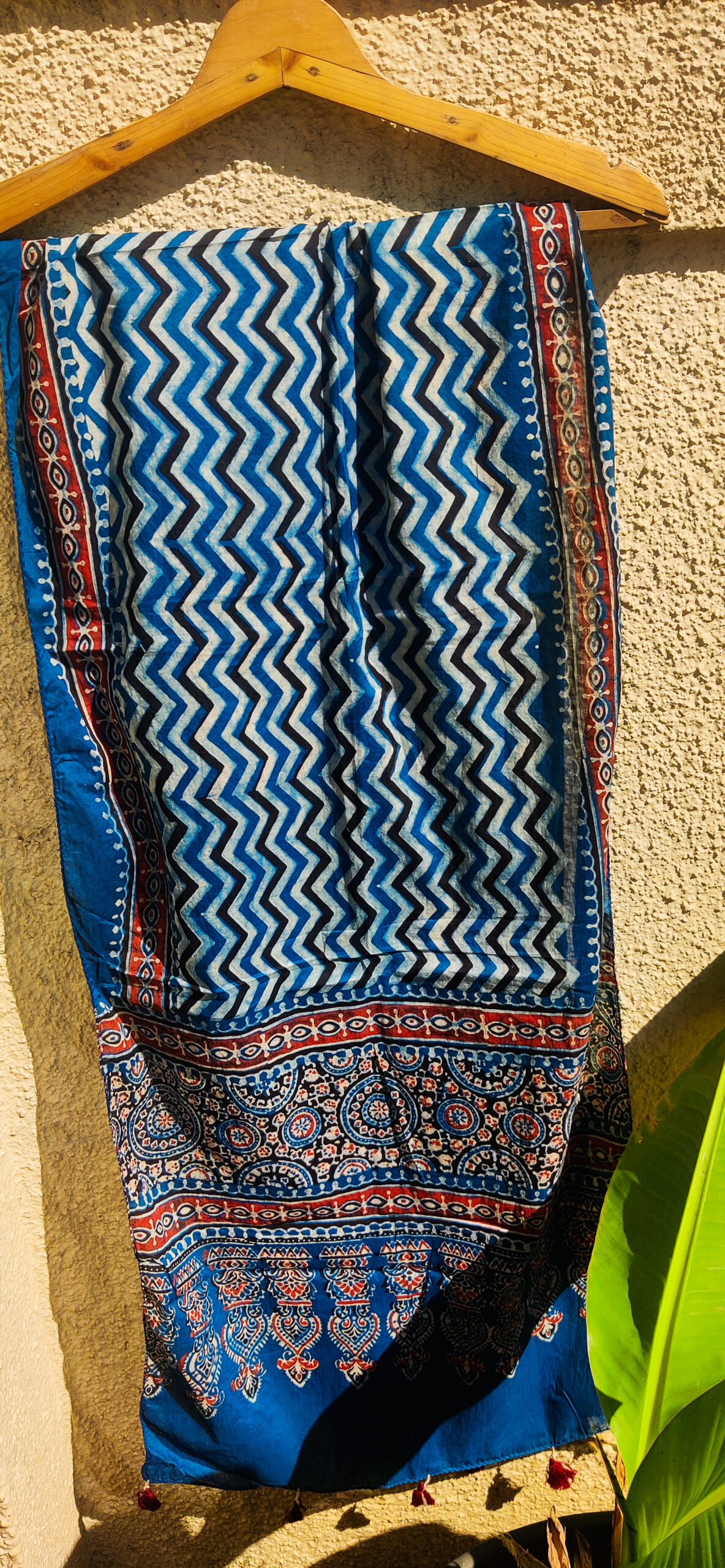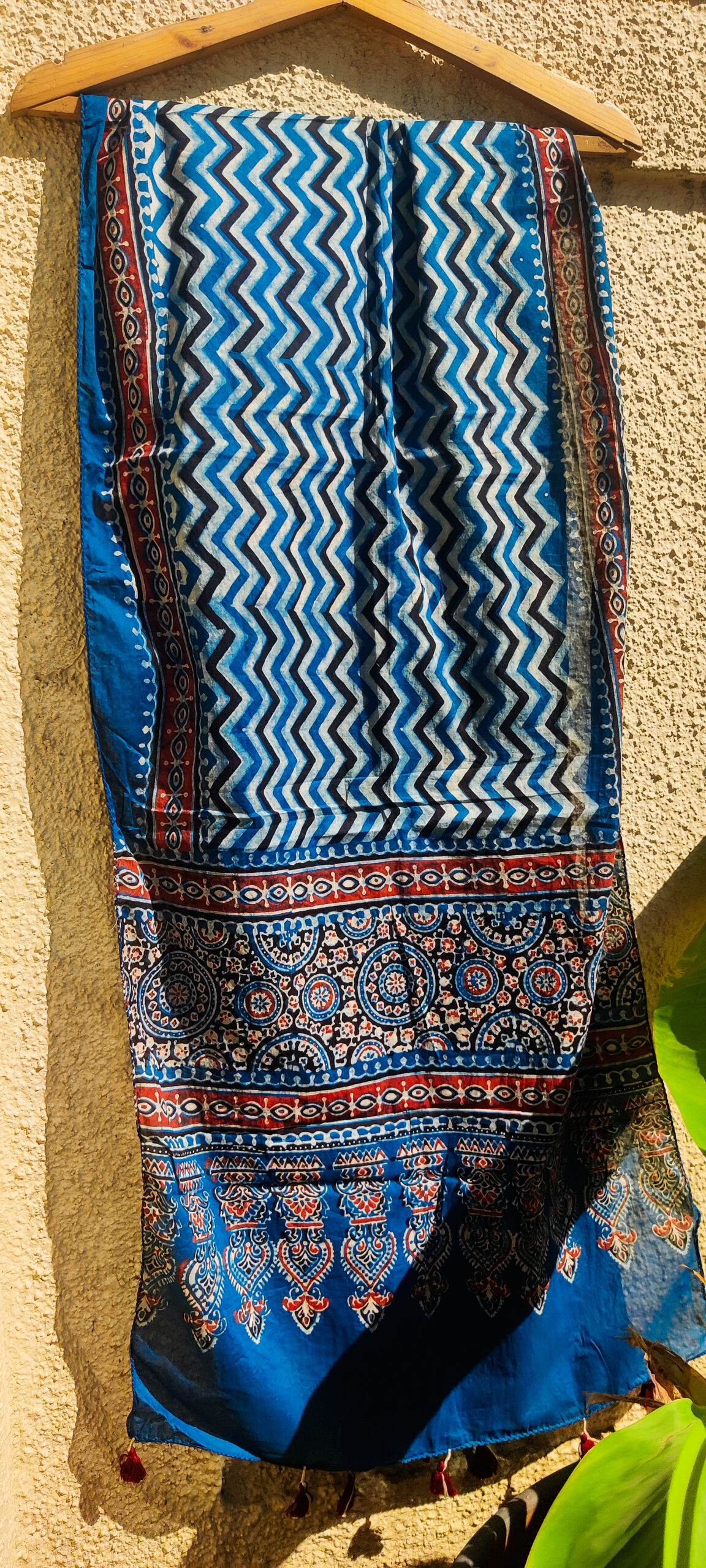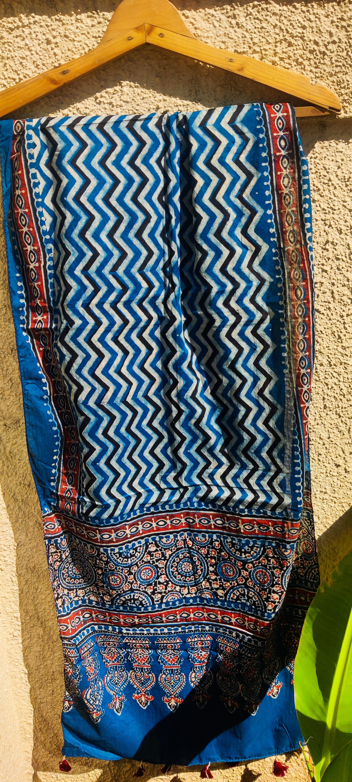 Handblock Printed natural dyed Ajrakh Mul Cotton Stole.