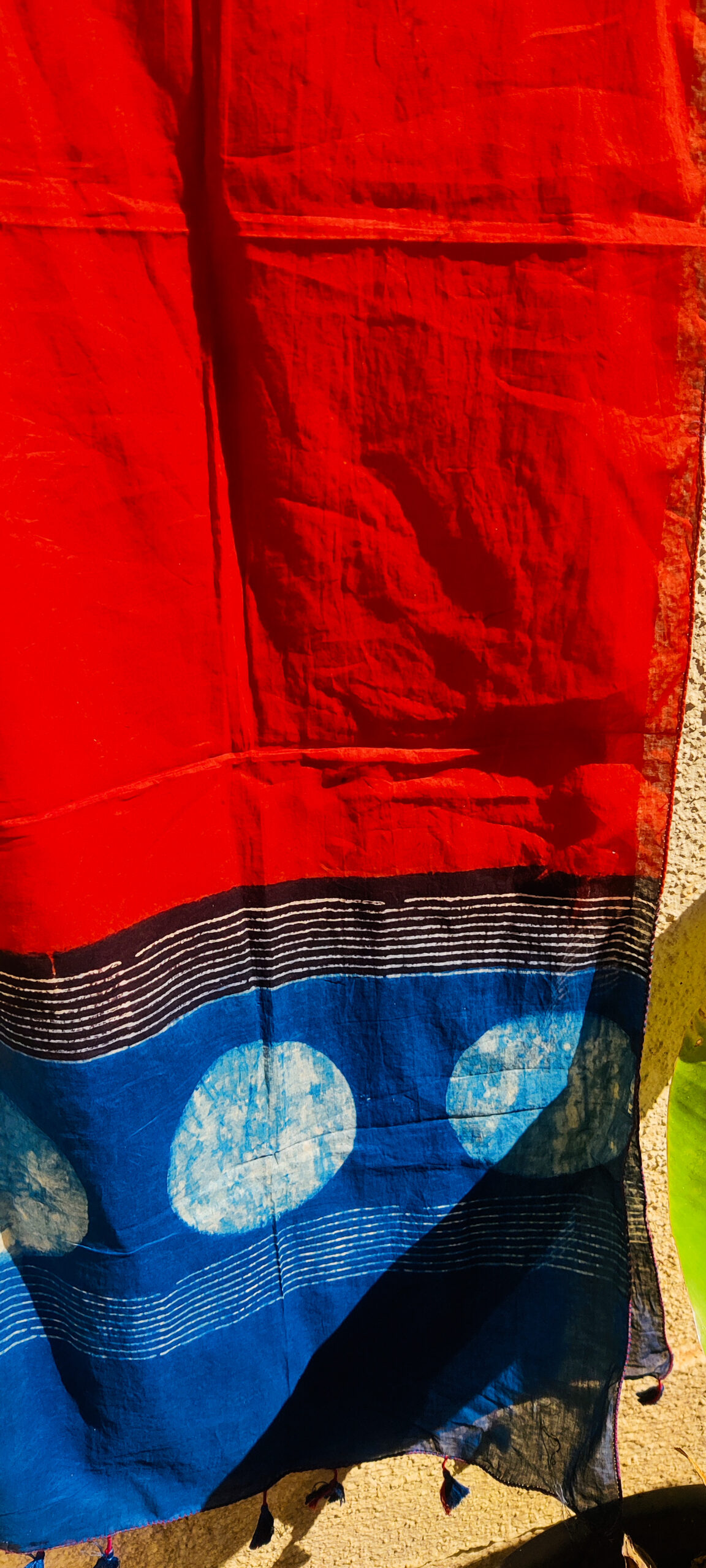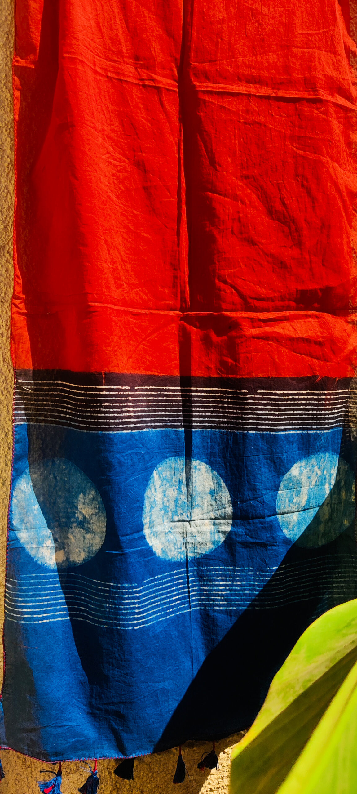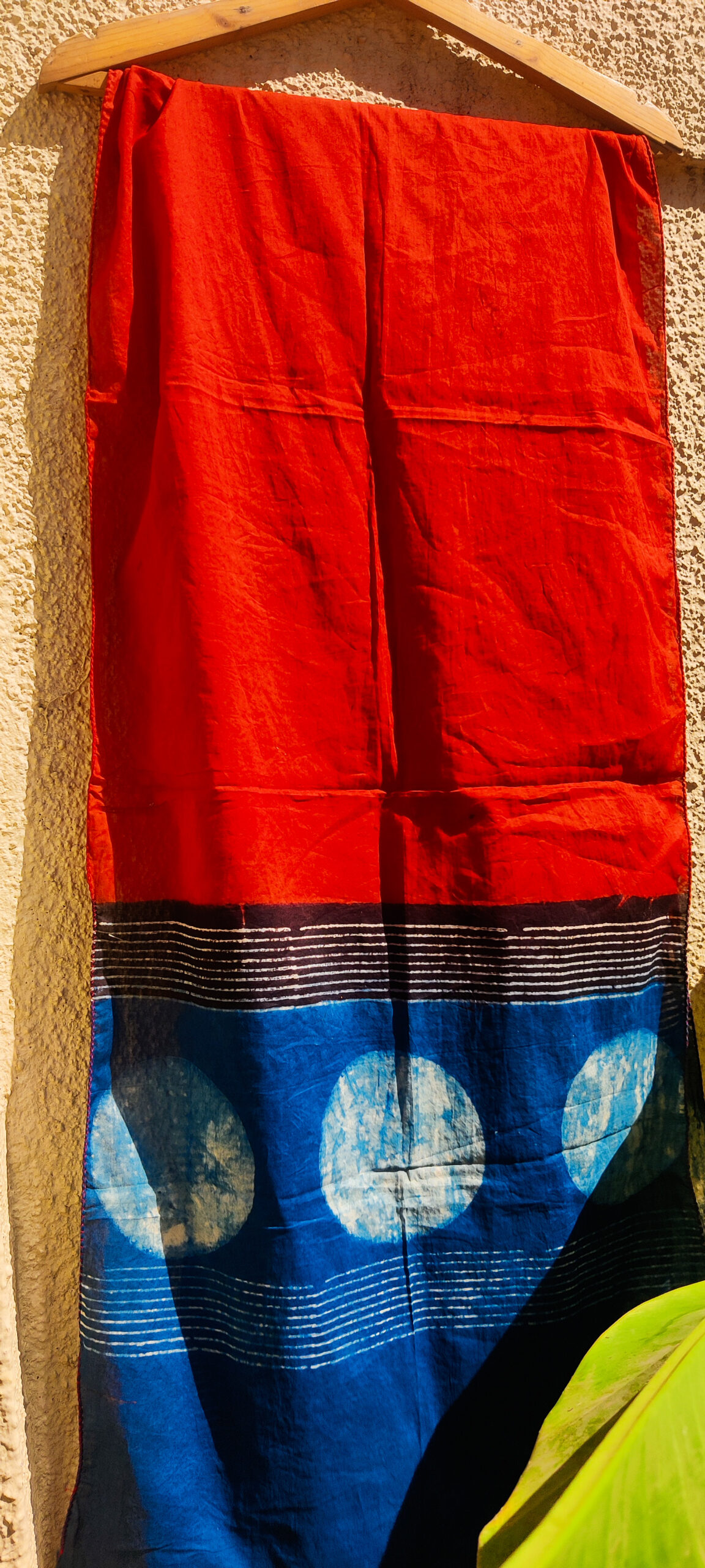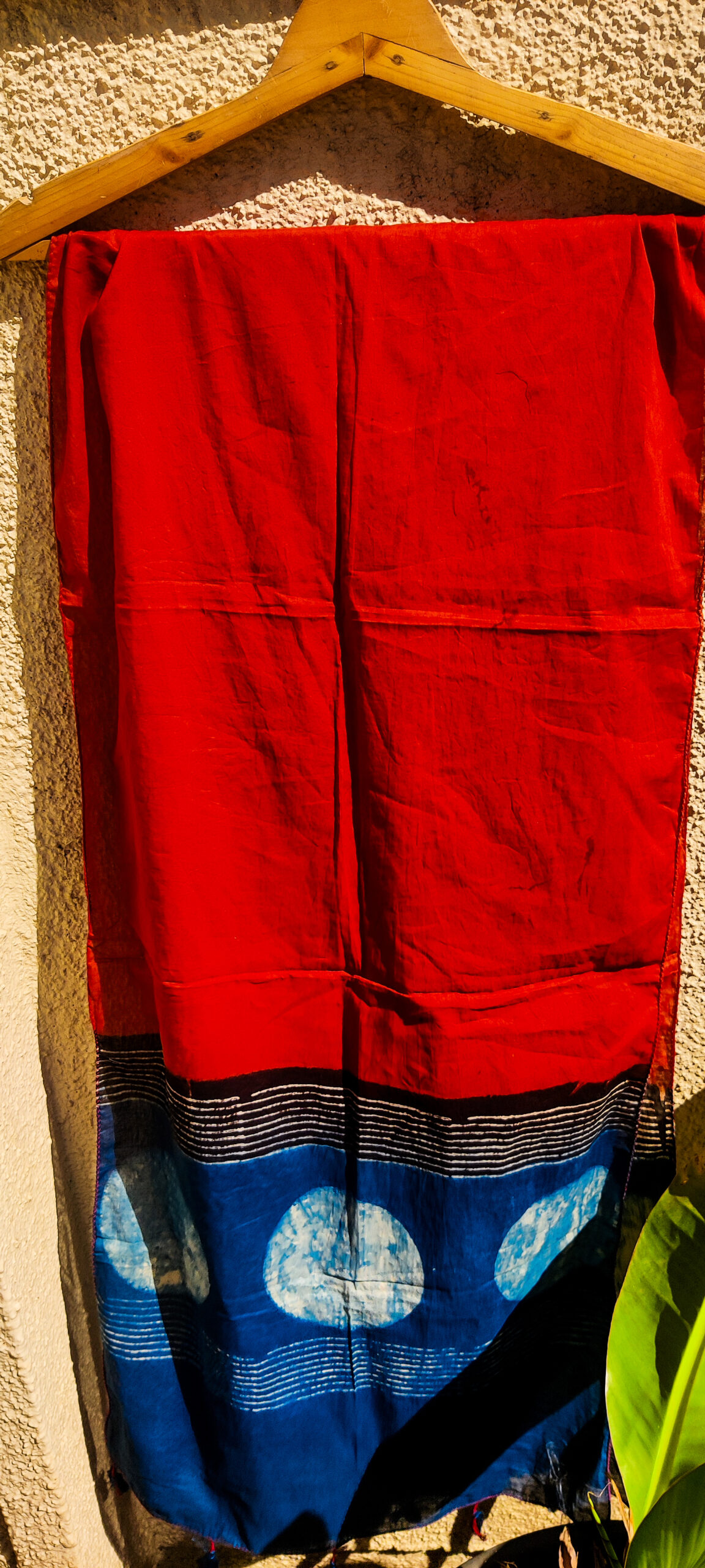Handblock Printed natural dyed Ajrakh Mul Cotton Stole.