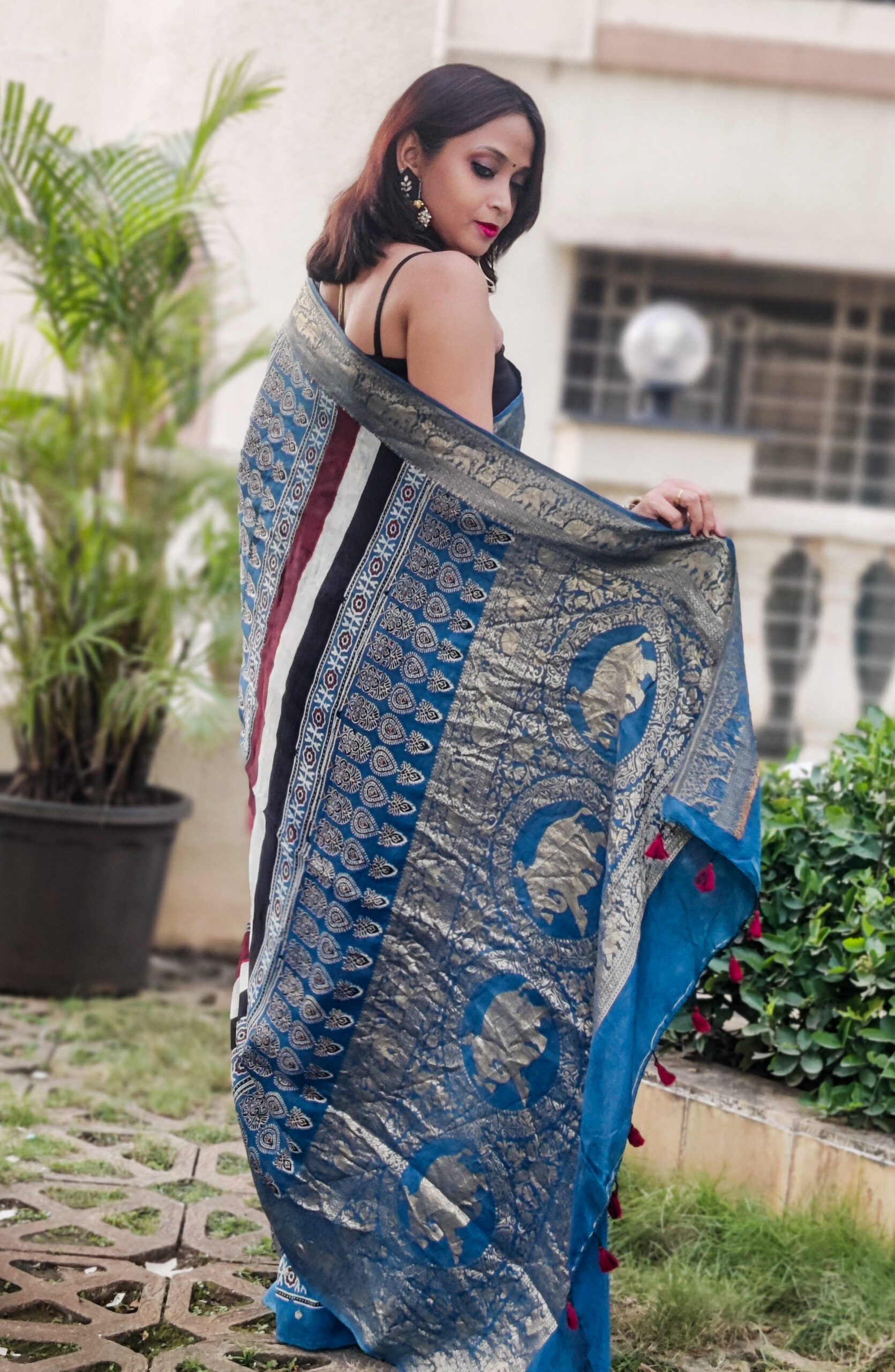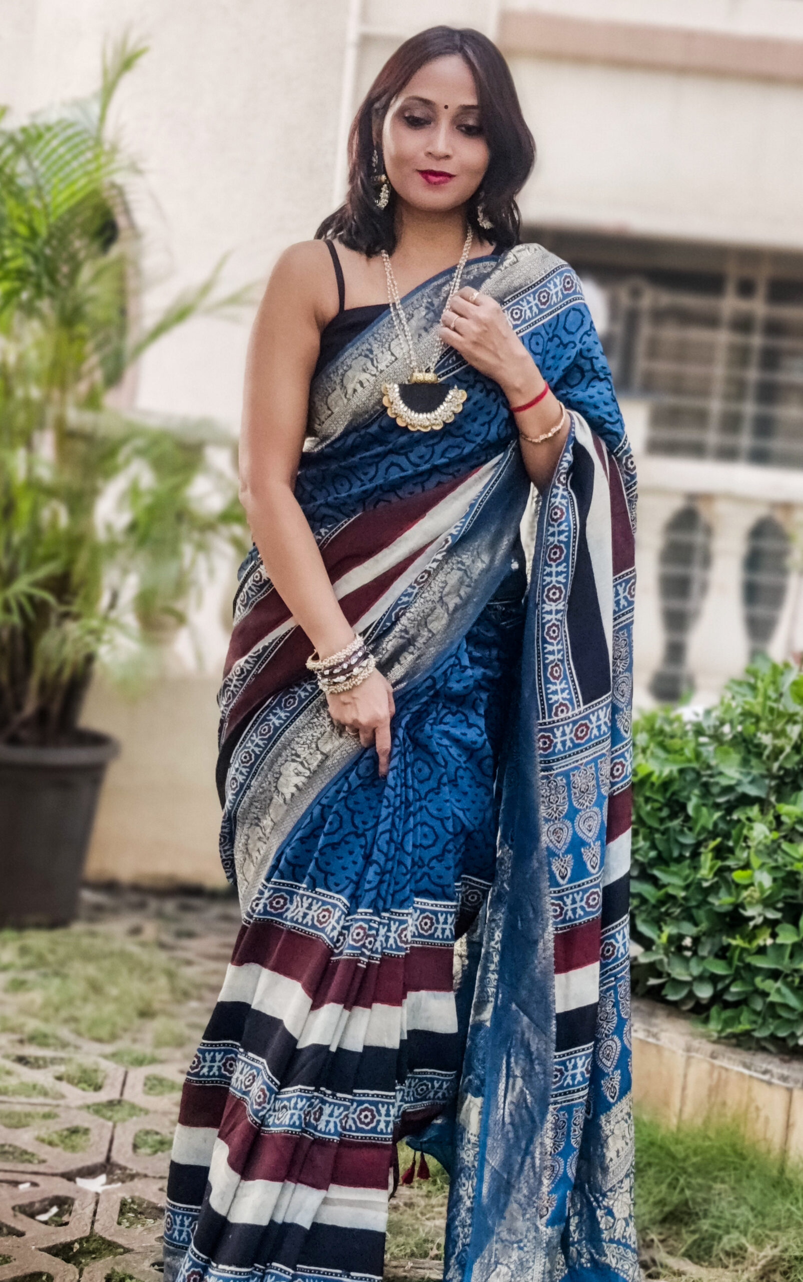 Saree: Handcrafted Ajrakh Dola Silk saree