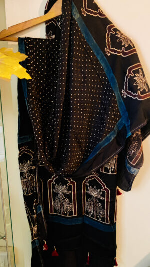 Handblock Printed natural dyed Ajrakh Modal Silk Dupattas.