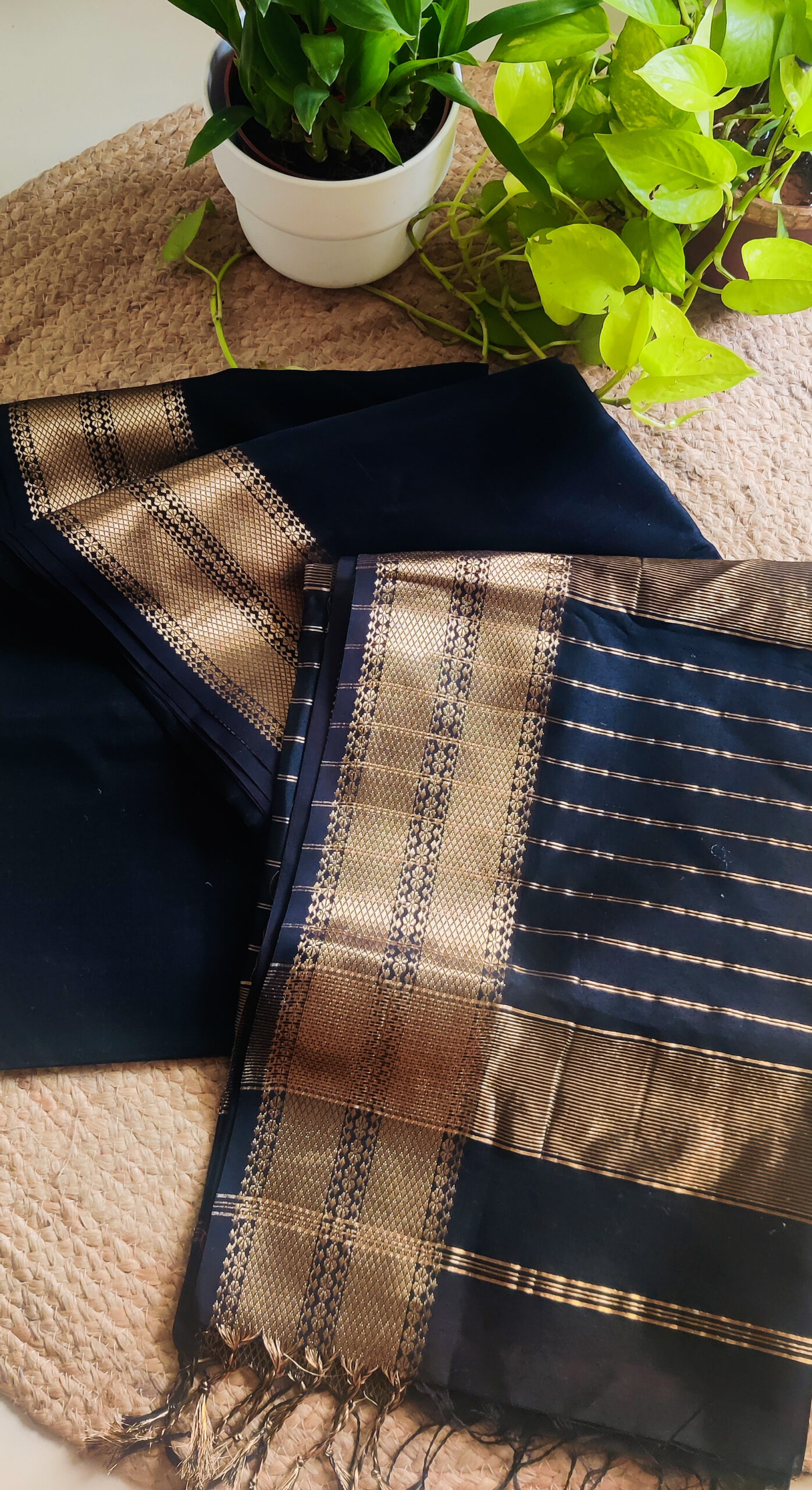 Please note that our textiles are handloom and handmade and due to that you may find slight irregularities from one product to another. We would also like to mention that the colors of the products can be a little different due to photographic lighting sources or your monitor / phone screen settings.