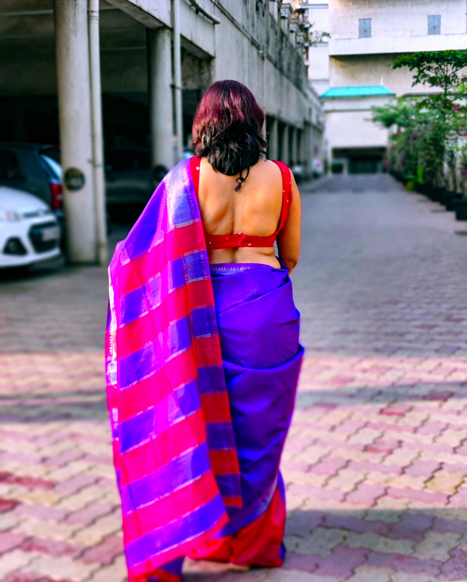 Colour : Bright Purple with contrast pink pallu and contrast blouse piece