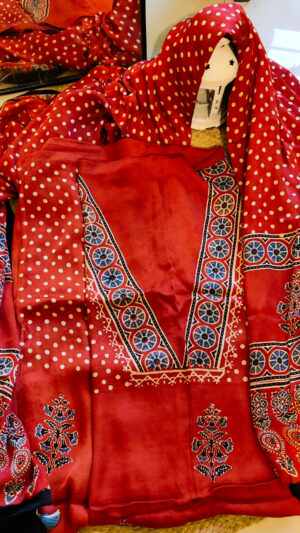 VRITTI(2 pc Sanganeri Hand Block Print Chanderi Silk Kurta & Dupatta Dress Material)